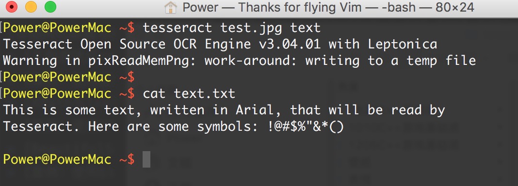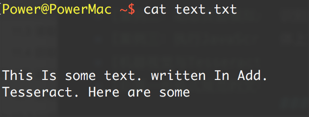 通过下面的命令运行 Tesseract,读取文件并把结果写到一个文本文件中: `tesseract test.jpg text